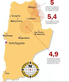 El último de los cuales ocurrió en la región de Arica y Parinacota a las 10:51 horas, con una magnitud 4,1 Richter. El epicentro se registró a 43 kilómetros al oeste de Arica.