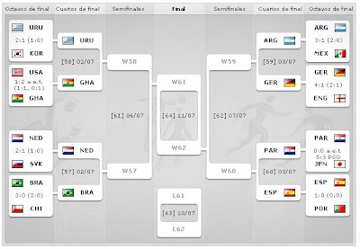 Y como van las cosas?, ya en cuartos de final cuatro equipos latinoamericanos, URUGUAY, ARGENTINA, PARAGUAY y BRASIL.
