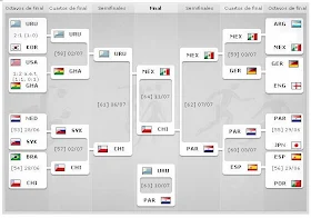 BRASIL----------------------------------(actualizado 26/06/2010)Ya pasó a cuartos de final URUGUAY, es una pena eso si que se eliminen entre ellos, MEXICO v/s ARGENTINA, CHILE v/s BRASIL, PARAGUAY no se le ve tan complicado con Japón.