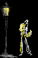 Con un ritmo movido africano, gritan su melancolía y esperanza la trompeta, trombón, saxofón, clarinet, piano, tambores... !pero sobre todo las personas!... en el Jazz simpre hay una persona desgarrando su dolor, a diferencia de los Blues, donde la trompeta o el piano actúan sin que nadie cante.