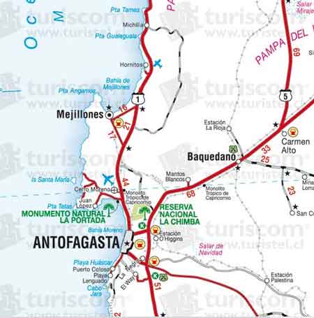 saliendo de Antofagasta, aproximadamente son como máximo 45 minutos de viaje, siendo bien precavido en el camino, el cual no se complicado, pero por el harto trafico de camiones se deben tener precauciones...