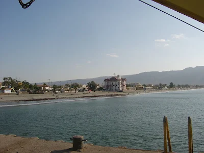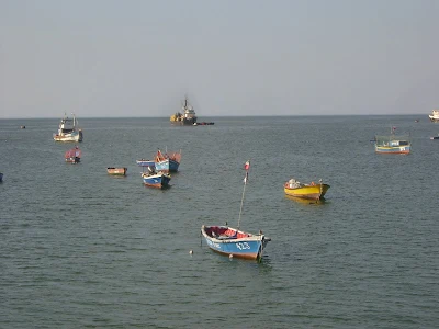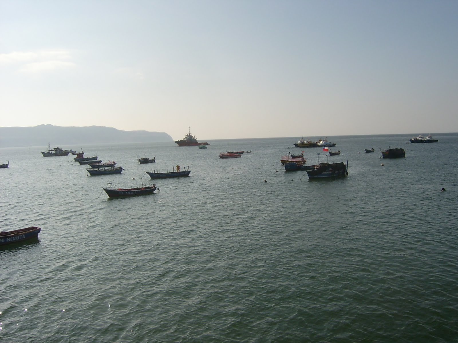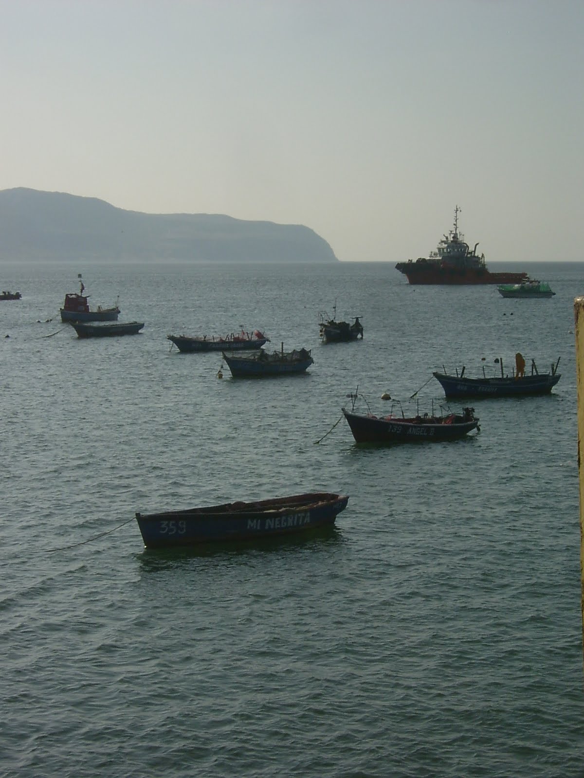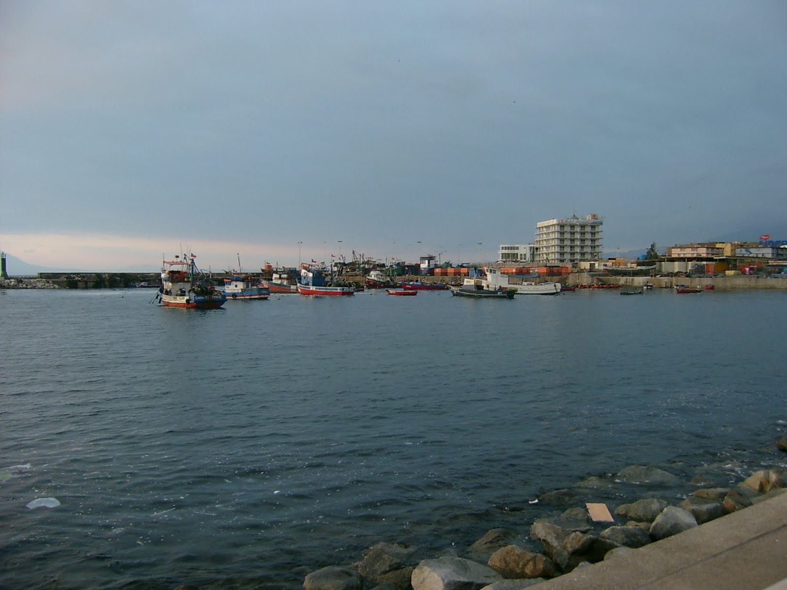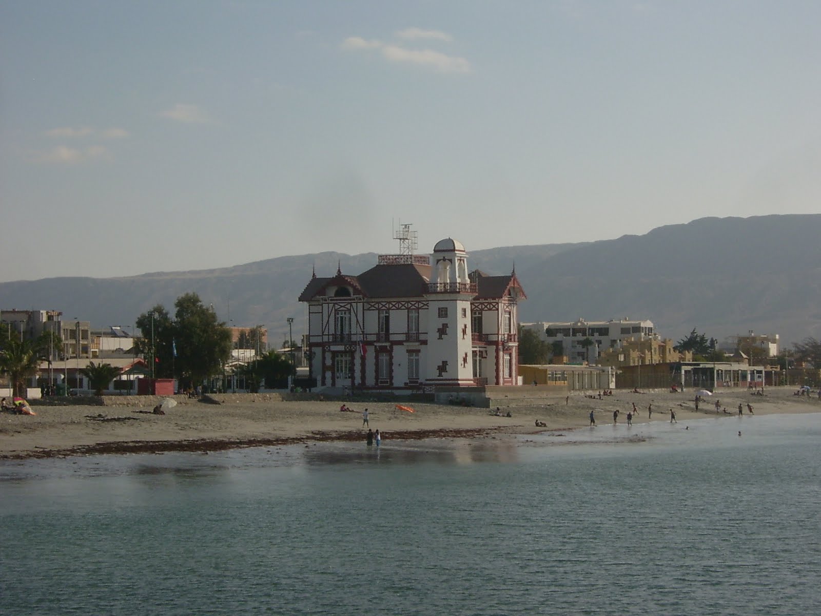 vista de Mejilones desde la caleta de pescadores, y del mar...